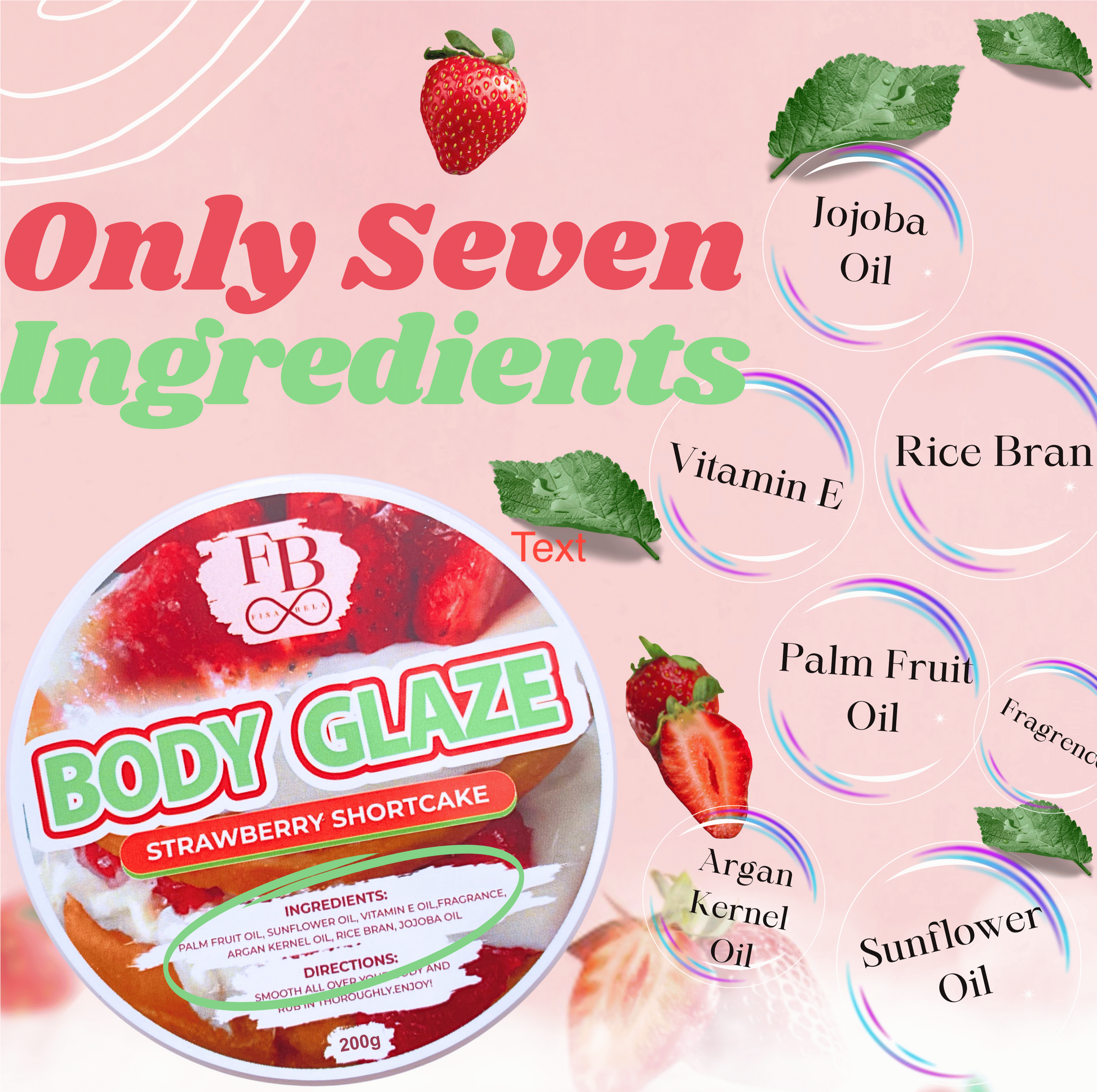 Body Glaze is loaded with significant benefits. This organic anti-aging formula is packed with antioxidants thanks to the star ingredient PALM FRUIT OIL. It leaves skin soft and glossy without being greasy. It tightens the skin and prevents sagging and wrinkling. Once you've been glazed you'll never want to be dry again. It's the ultimate icing for your skin. The texture is creamy and silky. It melts in your hand the way a glazed doughnut melts in your mouth.